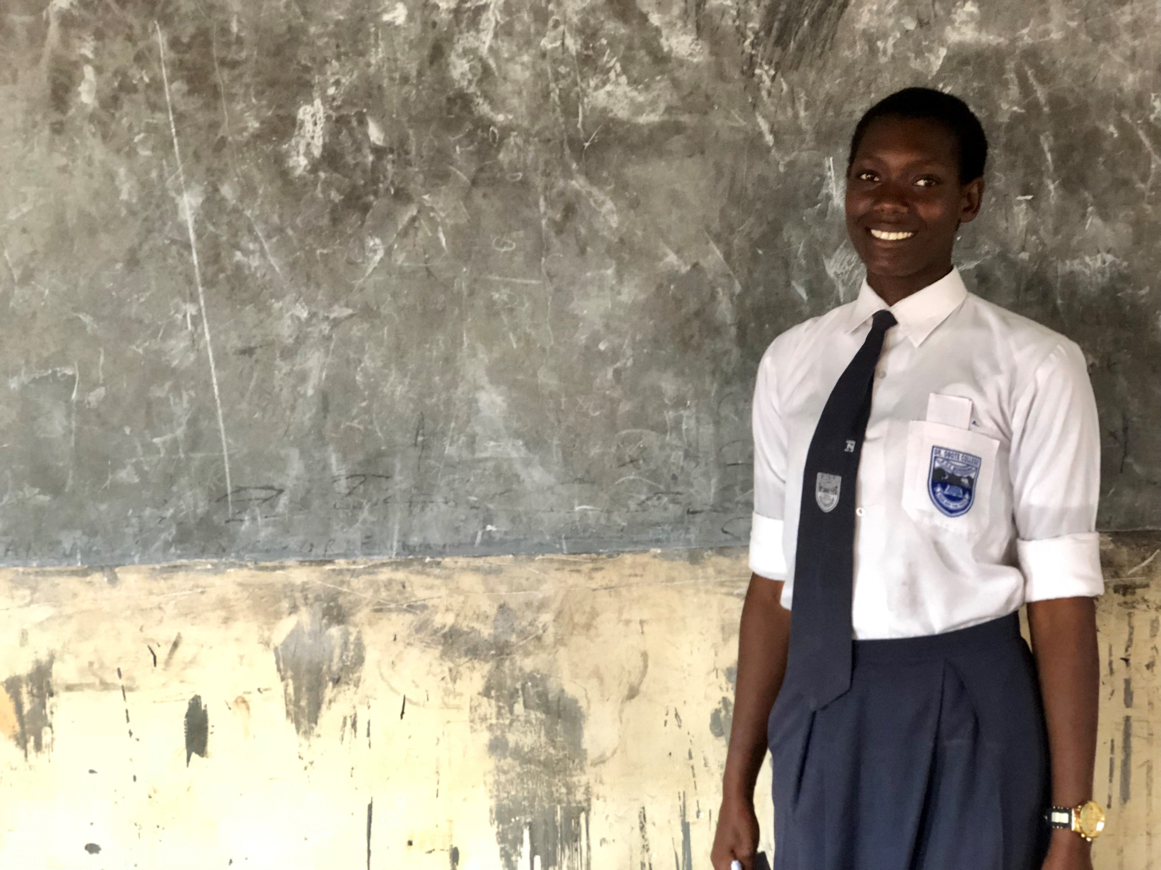 Pricilia stands in front of the white board in the girls’ study room, which she advocated for. Girls education and empowerment concept